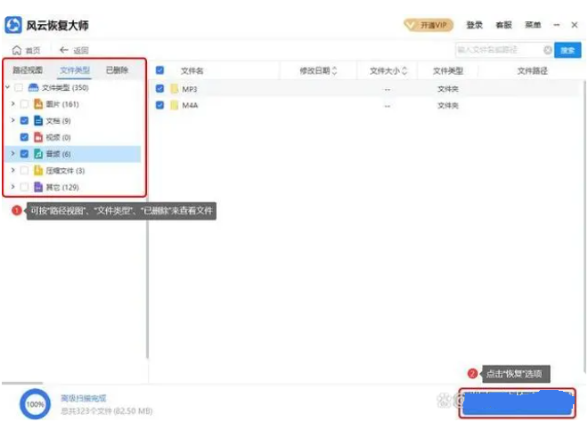 2:掃描后,在出現的頁面左側,你能根據“路徑視圖”、“文件類型”、“已刪除”來查看你需要恢復的文件。選擇好后,點擊“恢復”選項。