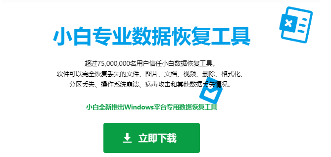 首先進入“小白數據恢復官網”下載安裝小白數據恢復軟件,根據需求設置安裝完成即可。