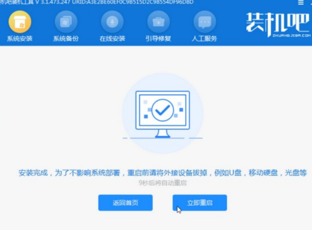 8.系統安裝完成后,點擊立即重啟。
