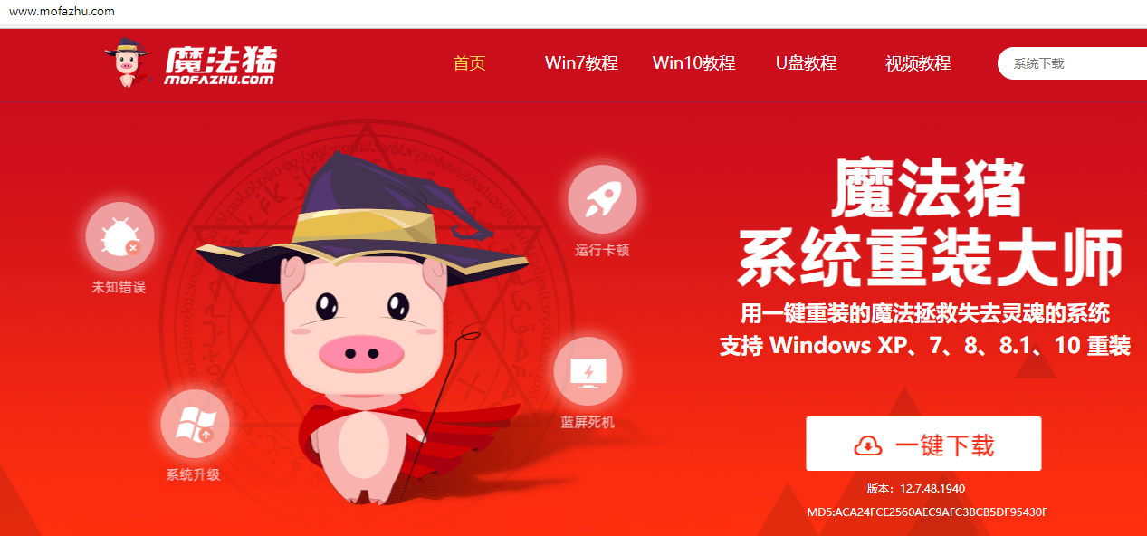 1.首先在一臺能正常上網使用的電腦中插入u盤,在魔法豬官網下載魔法豬裝機軟件。