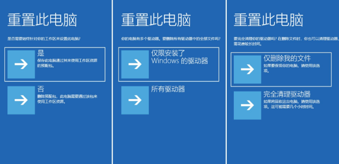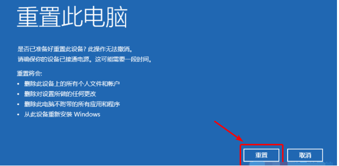 注意事項:如果提示無法重置,或者重置后問題依舊,說明遇到了靠電腦自己無法修復的故障,可以嘗試方法二的借助u盤重裝系統解決。
