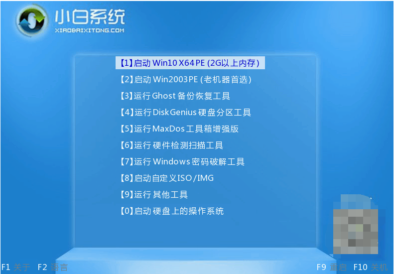 插入u盤啟動盤進需要安裝的電腦中,電腦重啟并不斷按啟動熱鍵進啟動界面,選擇u盤啟動項進入到第一項pe系統。