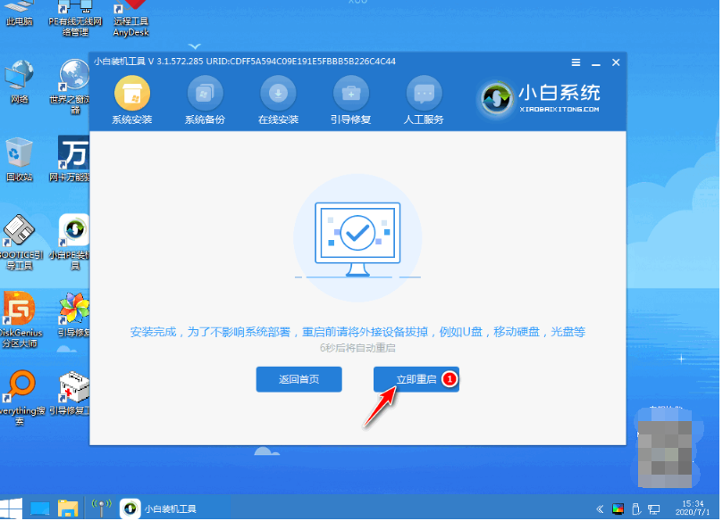 提示安裝完成后,先拔掉u盤,再重啟電腦。