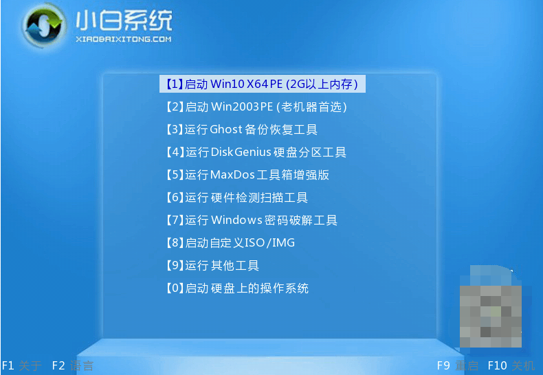 插入u盤啟動盤進需要安裝的電腦中,電腦重啟并不斷按啟動熱鍵進啟動界面,選擇u盤啟動項進入到第一項pe系統。