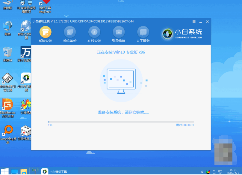 來到pe系統桌面,打開小白裝機工具,選擇windows系統點擊安裝到c盤。