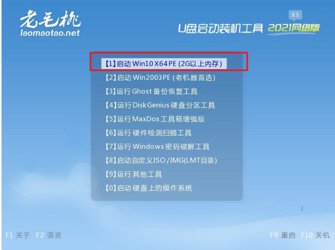 4、 接著,按回車鍵進入老毛桃PE界面,選擇【1】進入winpe系統桌面。