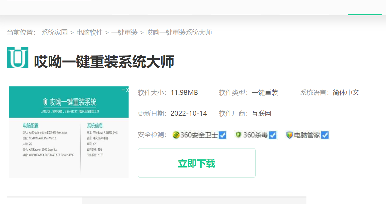 目前能用來給電腦一鍵重裝系統的工具有很多,五花八門,最近有網友看到了一款叫哎呦一鍵重裝系統大師的,但不知道哎呦一鍵重裝系統大師怎么重裝系統。下面小編就給小伙伴們講講哎呦一鍵重裝系統操作步驟。