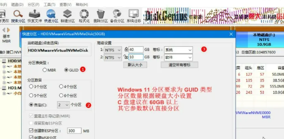 2、重啟后進入 PE 系統,打開電腦界面上的分區工具(DiskGenius),選擇您的硬盤,軟件開始執行快速分區。