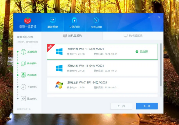 軟件版本:番茄一鍵裝機12,3.小白一鍵重裝系統V2209