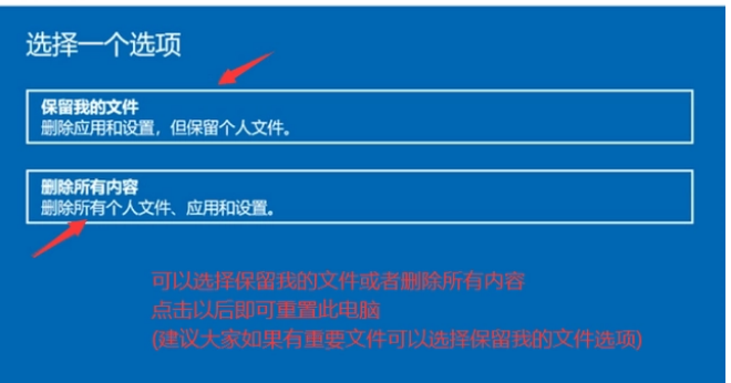 步驟4:接著會彈出一個【初始化這臺電腦】的窗口,你可以選擇保存文件,或者刪除所有的內容(建議大家選擇【保留我的文件】,避免因為重裝系統而造成數據丟失)。選擇好后,就可以重置這臺電腦了。