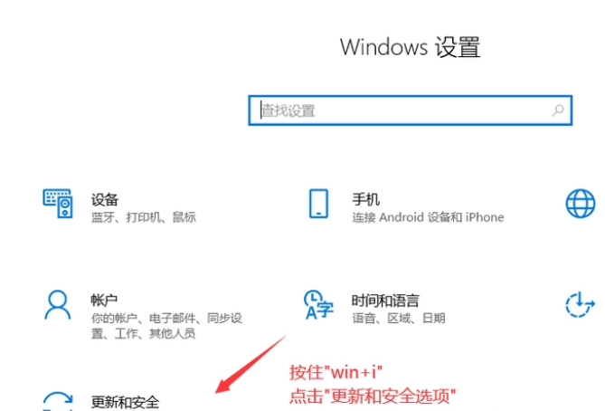步驟1:同時按下【Win+i】打開設置窗口,在界面下方找到【更新和安全選項】,并點擊它;