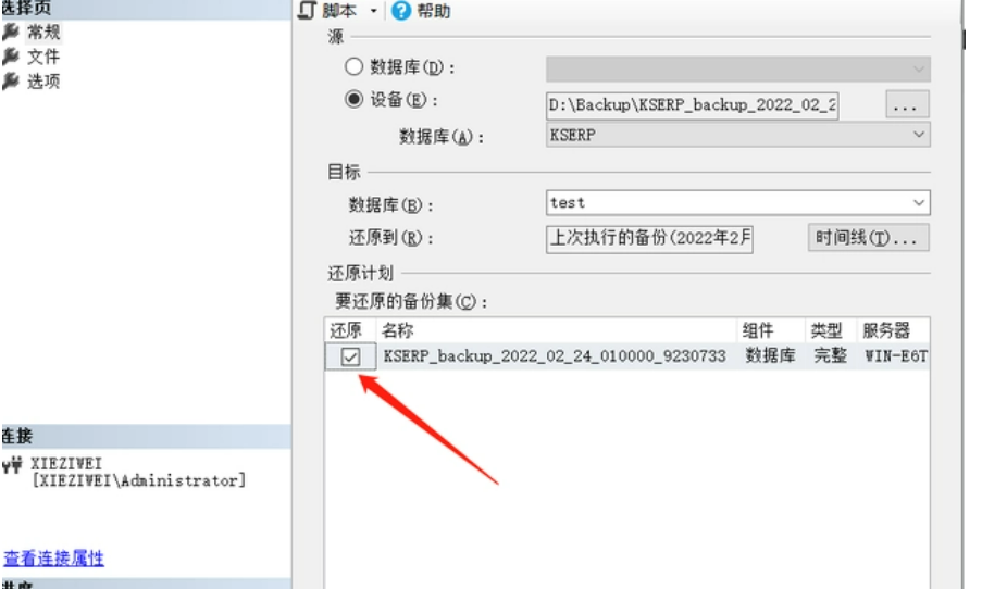 7、然后點【常規】--【設備】--【三個點】,數據庫就是我們剛剛新建的那個。
