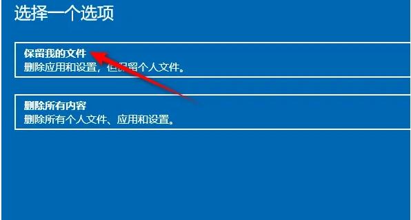 3、根據自己的需求選擇是否保留文件,這里小編選的是保留我的文件,然后根據提示重置安裝系統,等待完成即可。