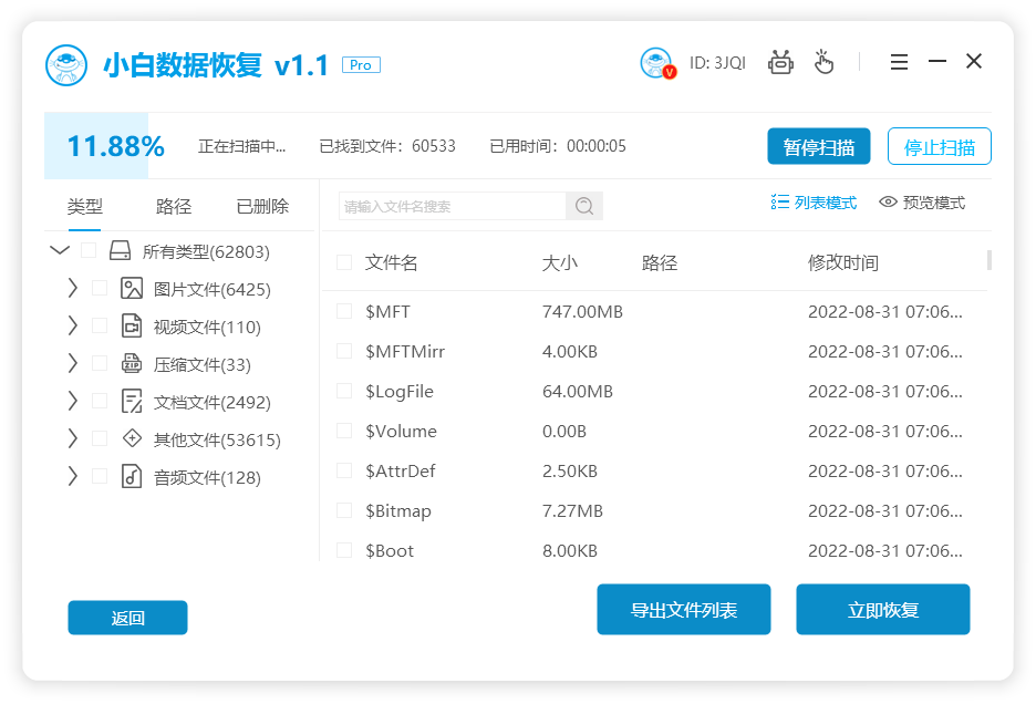 軟件版本:小白數據恢復v1.1