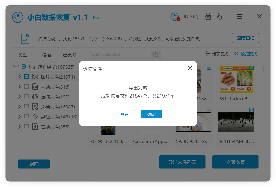 5、打開列表,勾選出要恢復的文件,點擊立即恢復。