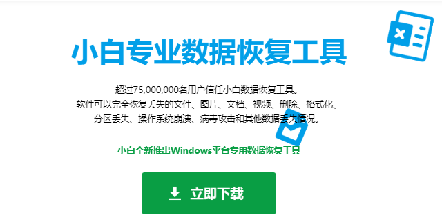 首先進入“小白數據恢復官網”下載安裝小白數據恢復軟件,期間只需根據需求設置安裝完成即可。