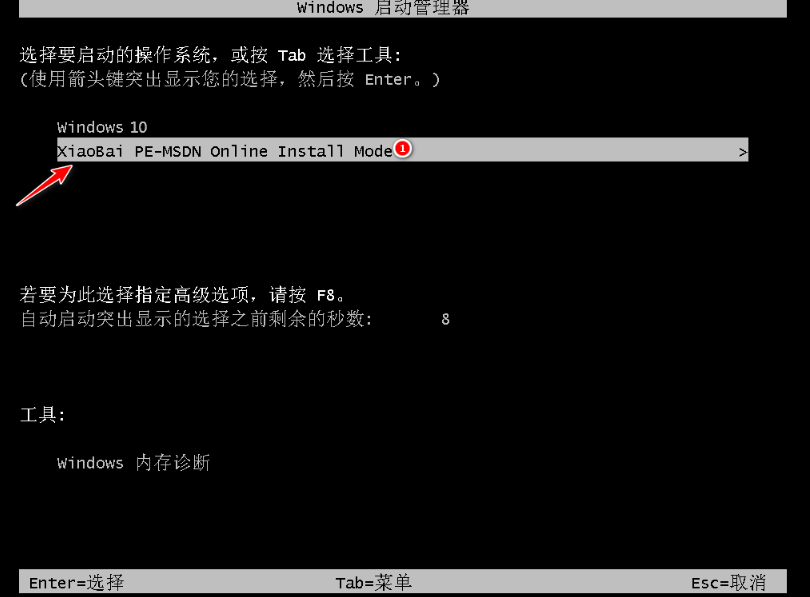 來到開機選項界面,如圖示,選擇第二項進入xiaobai-pe系統。