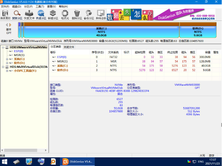 1、參考方法一制作u盤啟動盤啟動進入pe系統后,打開電腦界面上的分區工具(DiskGenius),選擇您的硬盤,軟件開始執行快速分區。