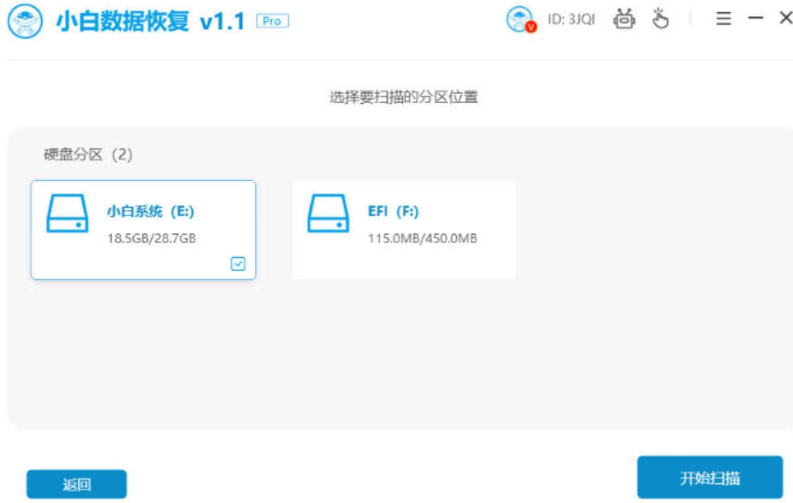 1、在電腦上打開小白數據恢復軟件,將u盤等丟失數據的可移動硬盤插入電腦,點擊U盤/內存卡恢復,點擊開始掃描。
