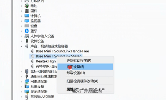 3、檢查音頻驅動是否被禁用,右鍵單擊被禁用的驅動,點擊“啟用設備”即可。