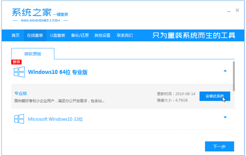 如果臺式電腦系統還能正常進系統的時候,可以直接借助系統之家一鍵重裝系統工具的在線重裝功能即可,軟件會全自動完成所有安裝步驟,操作簡單。具體的步驟如下: