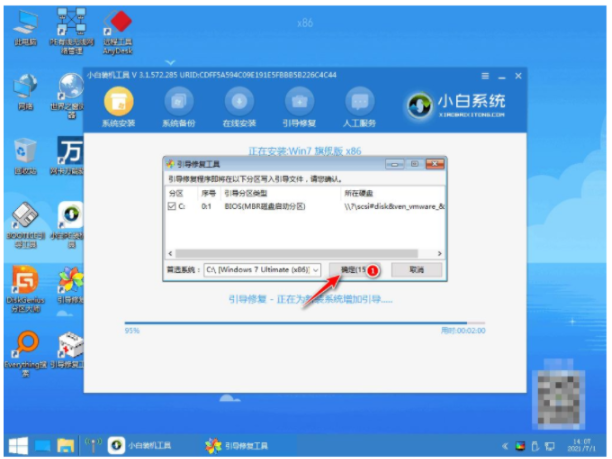 5、然后進入PE系統的界面點擊小白裝機工具繼續安裝,等待安裝完成。