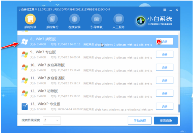 5、打開桌面上的小白裝機工具,選擇需要安裝的系統點擊安裝。