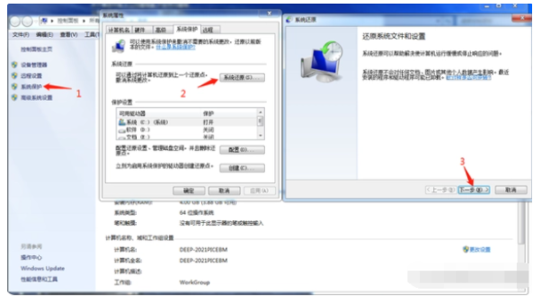 1、點擊之前的還原點進行還原系統。也可以借助第三方工具,比如使用一鍵ghost等軟件安裝后,在系統出問題無法進系統時,可以用一鍵ghost啟動進行安裝系統。前提是需要先用PE系統進入電腦桌面轉移桌面資料。如果桌面文件內容不在系統盤,又沒有其他需要保存的內容,則可以用一鍵ghost直接重裝系統,比如借助上述的小白一鍵重裝系統工具在線一鍵安裝系統。