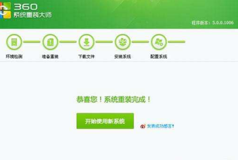 7、系統重裝完成后,提示【恭喜您!系統重裝完成!】。