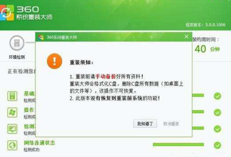 360重裝大師是一款系統重裝軟件,可以幫助用戶快速、簡單地重裝系統。以下是360重裝大師的優點:
