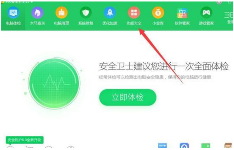 1、打開360衛士,點擊功能大全。