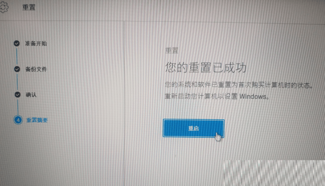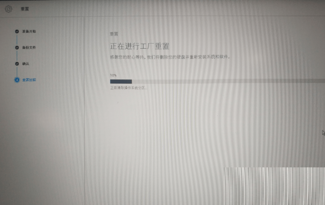8、重置,正在進行工廠重置,等待進度條加載即可;
