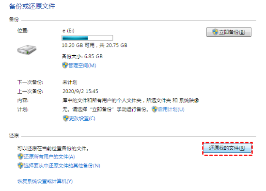 如果之前有使用過Windows自帶的備份還原功能備份過SD儲存卡,那么直接可以通過以下備份還原步驟來恢復誤刪的數據,如果沒有備份過的話,那么就不適用該方法了。具體如下: