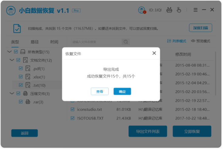 5、軟件會將全部文件恢復完畢,點擊確定即可。