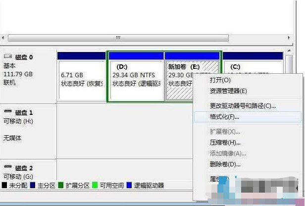 3、右鍵單擊要格式化的卷,然后單擊“格式化”。