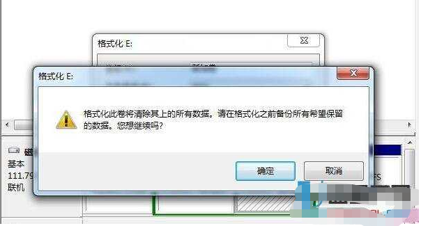 3、單擊“開始”按鈕,將彈出“格式化警告”對話框,若確認要進行格式化,單擊“確定”按鈕即可開始進行格式化操作。這時在“格式化”對話框中的“進程”框中可看到格式化的進程。格式化完畢后,將出現“格式化完畢”對話框,單擊“確定”按鈕即可。