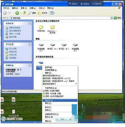 1、選擇要進行格式化操作的磁盤,單擊“文件”∣“格式化”命令,或右擊要進行格式化操作的磁盤,在打開的快捷菜單中選擇“格式化”命令。