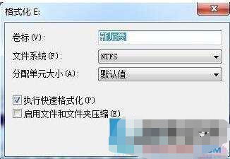 2、分配單元大小”為默認配置大小,在“卷標”文本框中可輸入該磁盤的卷標;若格式化的是硬盤,在“文件系統”下拉列表中可選擇NTFS 或FAT32, 在“分配單元大小”下拉列表中可選擇要分配的單元大小。若需要快速格式化,可選中“快速格式化”復選框。