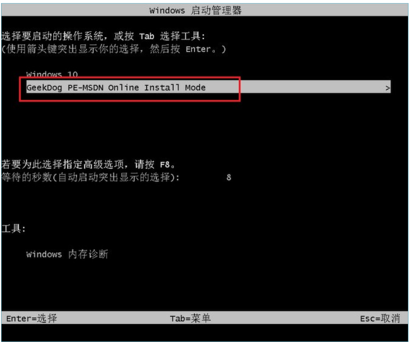 7、要您選擇操作系統啟動,請選擇PE選項回車進入。