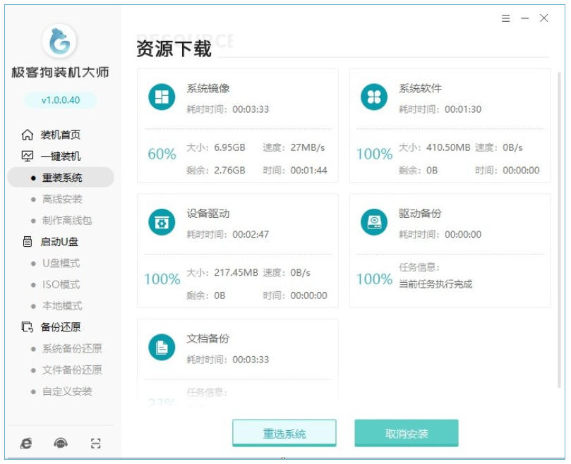 5、資源下載中,自動下載我們選擇的系統文件、系統軟件等等,請耐心等待。