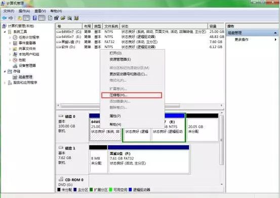1、本地進行分區,右鍵“計算機”,打開“管理”界面。