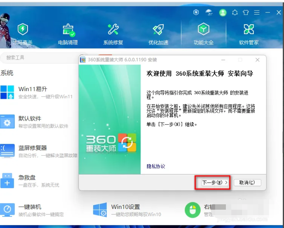 3、使用它安裝系統比較安全、干凈,除了360不會有其他軟件,也不用擔心被病毒入侵。