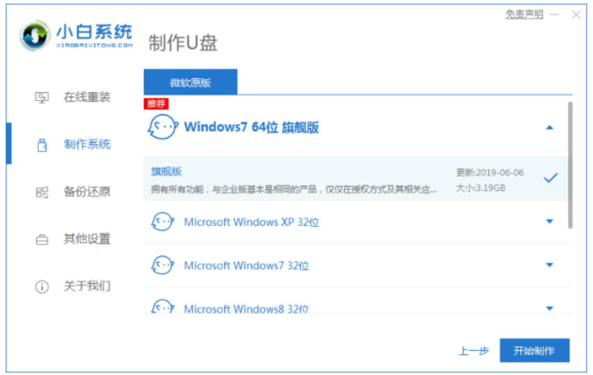 2、選擇我們需要安裝系統,點擊開始制作啟動盤。