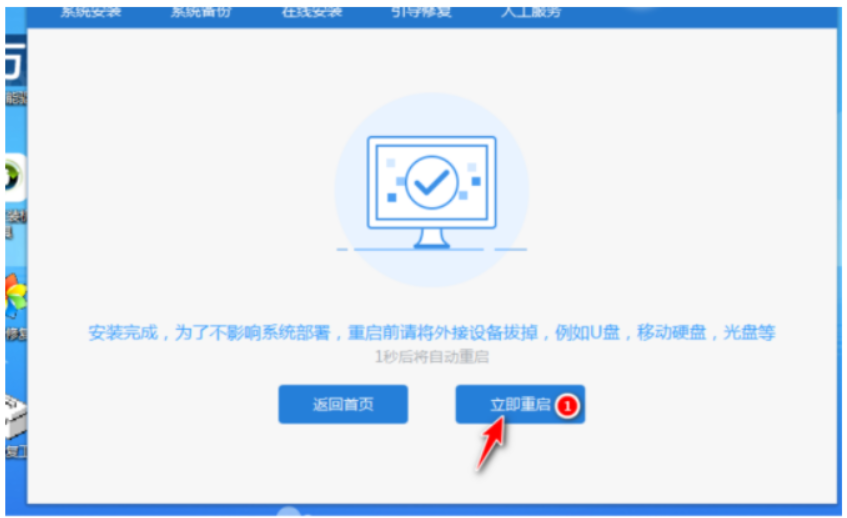 7.系統安裝完成之后,耐心等待10秒軟件會自動進入到重啟,也可以直接選擇立即重啟。