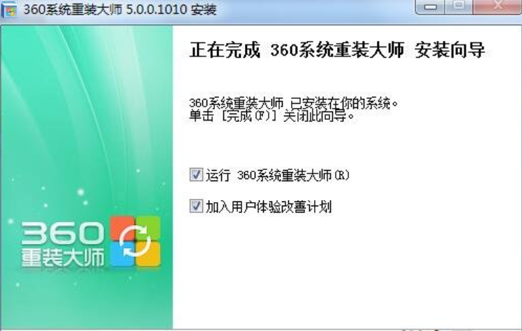 5、當出現下圖所示的情況,證明已經360系統重裝大師已經安裝完畢 。