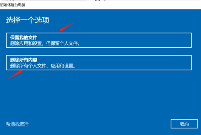 3、在彈出的初始化這臺電腦,我們可以選擇保留我的文件或者刪除所有內容,建議大家如果有重要文件可以選擇保留我的文件選項,點擊以后即可重置此電腦。
