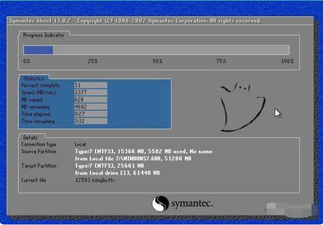 5、點擊安裝以后,會進入系統安裝界面,如下圖所示: