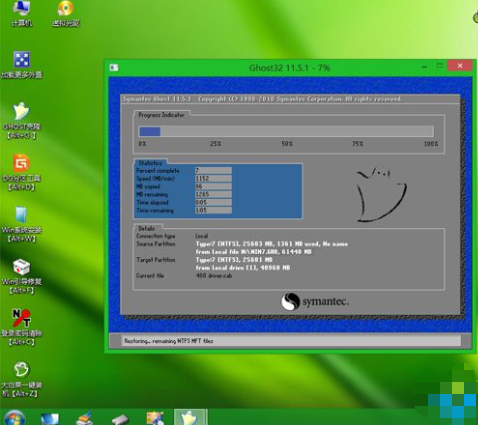 9、顯示這個界面時中執行系統還原到C盤的操作,這個過程需要5分鐘左右。
