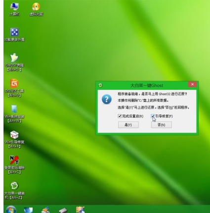 8、彈出這個提示框,我們勾選“完成后重啟”和“引導修復”,點擊是開始執行還原過程。