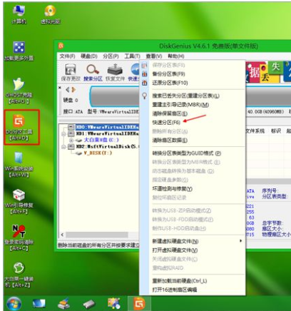 4、進入到pe系統,如果需要分區,直接看第6步,如果需要重新分區,需要備份所有數據,然后雙擊打開【DG分區工具】,右鍵點擊硬盤,選擇【快速分區】。